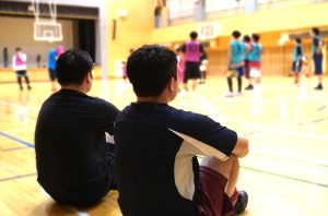 早速ですが、写真は日頃の活動の一環でバスケサークルに参加している社員さんの後ろ姿です。笑